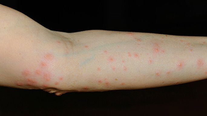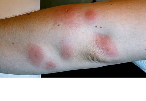 | Multiple Allineate | Qualsiasi con prevalenza braccia, interno cosce, infradito, schiena | Non sempre fastidiose | Al risveglio | Camera da letto o comunque ambiente dove si dorme | Cimex lectularius(Cimice del letto) |